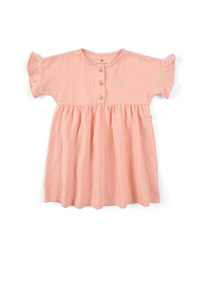 %100 organik pamuk müslin kumaştan üretilen çocuk elbisesi, yumuşacık kumaşı, nefes alan yapısıyla çok sevimli bir görünüme sahiptir