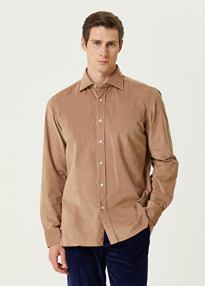 Klasik yaka, düğme kapatmalı, kadife gömlek