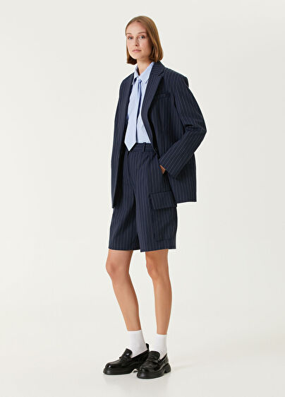 Yüksek bel, çizgi desenli, yün bermuda