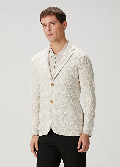 Zikzak desen jakarlı, 3 adet dış cepli, 1 adet iç cepli