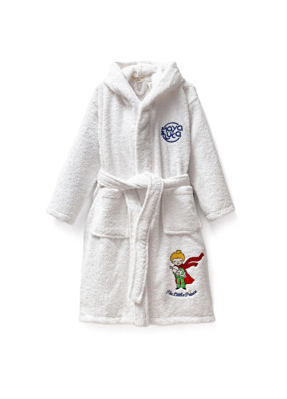 Beyaz Küçük Prens Nakışlı Pamuklu Erkek Çocuk Bornoz