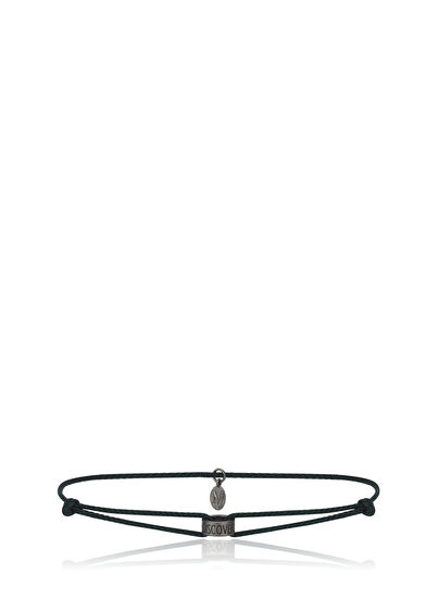 Discover The Wonder Siyah Pırlanta Taşlı 925 Ayar Gümüş İpli Erkek Bileklik