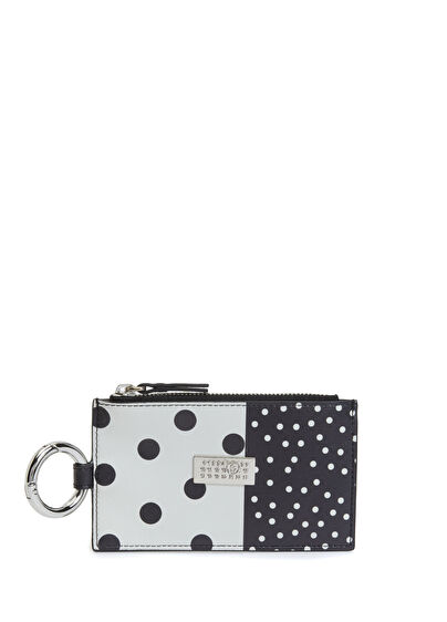 Siyah Beyaz Puantiyeli Kadın Deri Kartlık