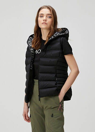 Kapüşonlu, fermuar kapatmalı, kapitoneli yelek