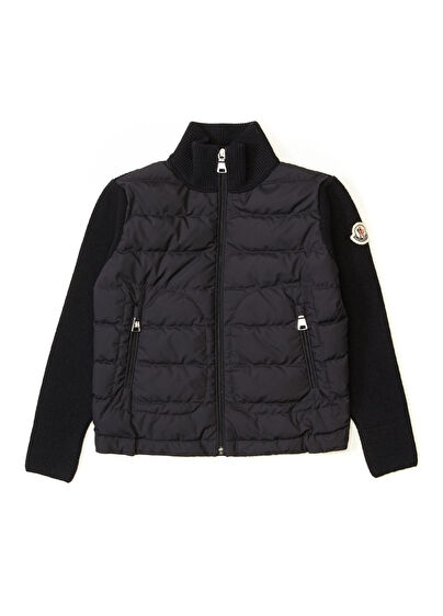Dik yaka, fermuar kapatmalı, logo detaylı hırka