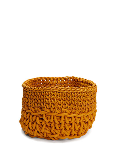 Yuvarlak formlu, örgü dokulu sepet