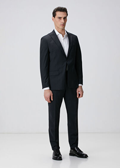 Çizgi desenli, yün karışımlı, dokuma takım elbise