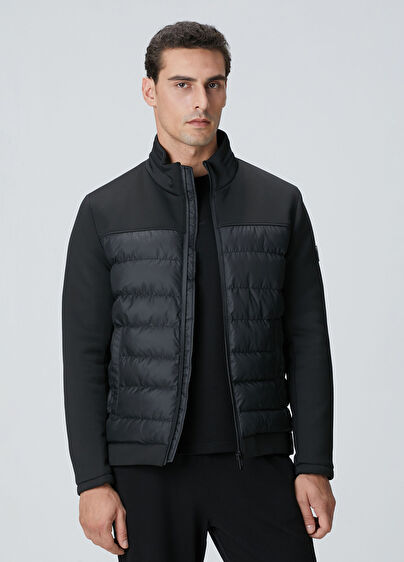 Dik yaka, uzun kol, dokuma, kapitoneli mont