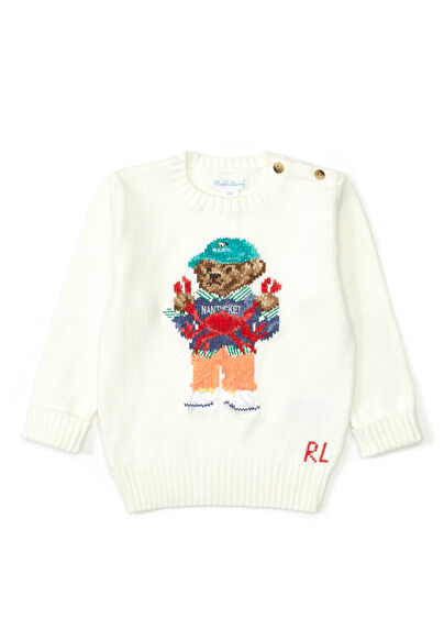 Bisiklet yaka, düğme kapatmalı, baskılı kazak