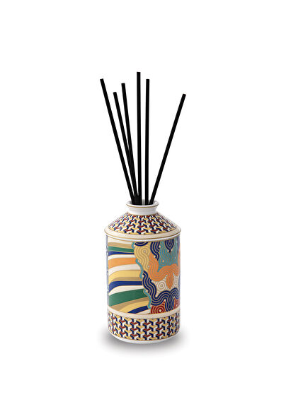 Zarif geometrik desenler ve canlı renklerin özenle birleştiği porselen difüzör seti özgün kokusuyla bulunduğu her ortamda sofistike bir atmosfer yaratır