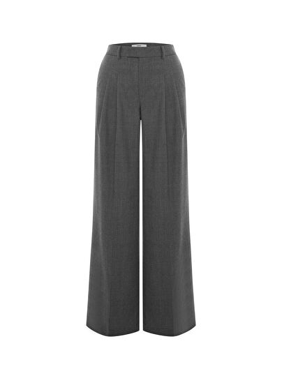 %100 yünden dikilmiş geniş paça pileli pantolon