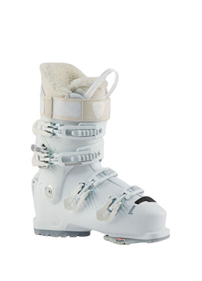 Yüksek hacimli uyum ve mütevazı esneklik arayan kayakçılar için üretilen kadın Rossignol Vizion 4B 80 kayak botları, yenilikçi bir spoyler ve omurga mekanizması sayesinde benzersiz bir kolay giyilebilirlik için arkada geniş açılan çığır açan bir üst üste binen kabuk tasarımına sahiptir