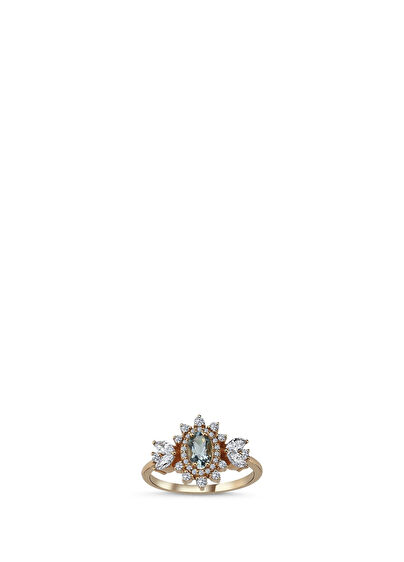 Hazine Aquamarine Pırlanta 14 Ayar Kadın Altın Yüzük