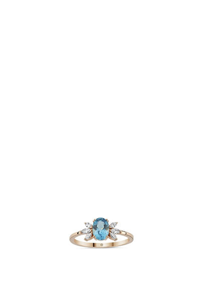 Hazine Blue Topaz Pırlanta 14 Ayar Rose Gold Kadın Altın Yüzük