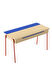 Bu üç renkli MISA ahşap masa, iki metal ayak tarafından destekleniyor ve neredeyse masanın kendisi kadar geniş bir raf alanı sunuyor.