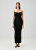 Düz yakası ve ayarlanabilir ince askıları ile vücudu güzel gösterir