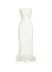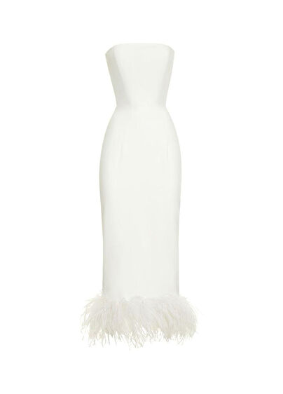 İtalyan 4 mevsim kumaş, arkası kuş gözlü ip/kurdela detaylı, yapay deve kuşu tüylü zamansız elbise