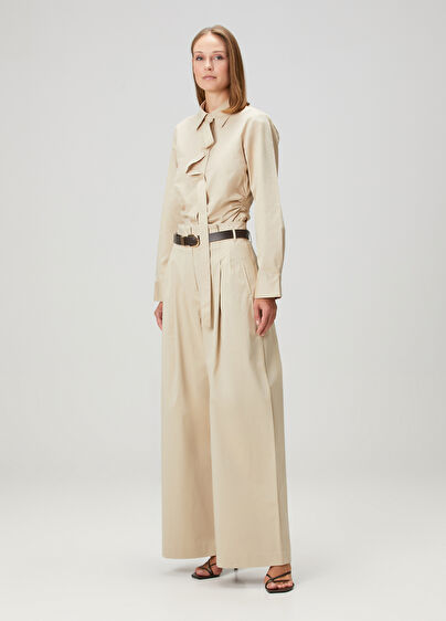 Yüksek bel, fermuar kapatmalı, organik pamuk pantolon