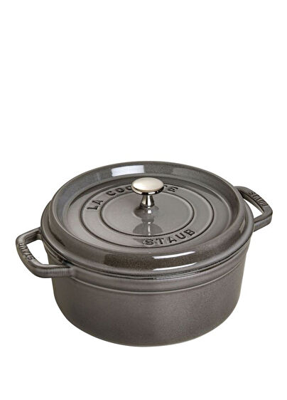 Bu yuvarlak ve renkli grafit grisi olan döküm tencere, 18 cm çapında ve maksimum 1,7 lt'lik bir iç hacme sahiptir
