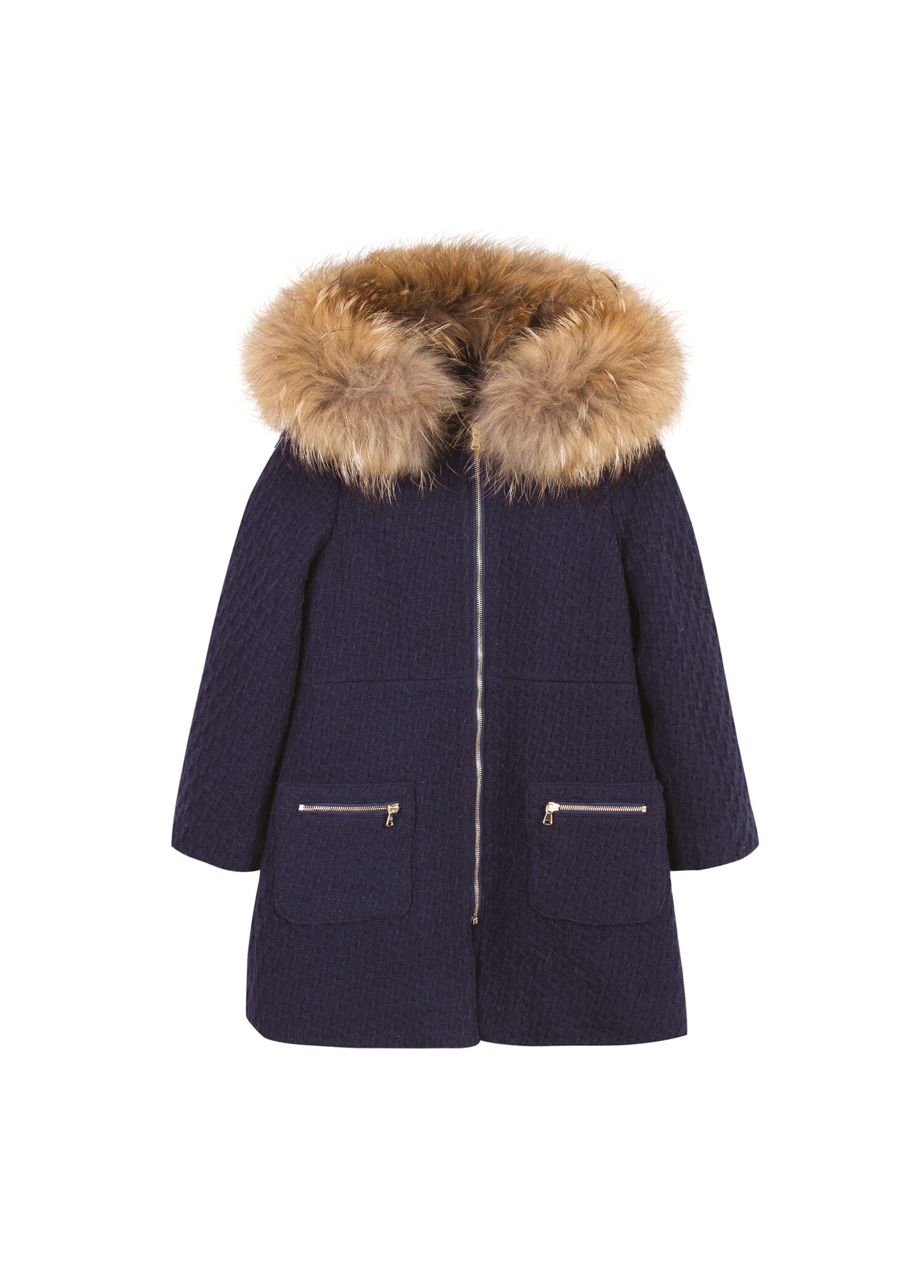 Lacivert Yün Kapüşonlu Kız Çocuk Manto