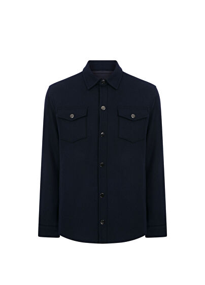 Navigli Lacivert Yünlü Normal Fit İnce Ceket