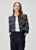 Bisiklet yaka, çizgi desenli, tweed ceket