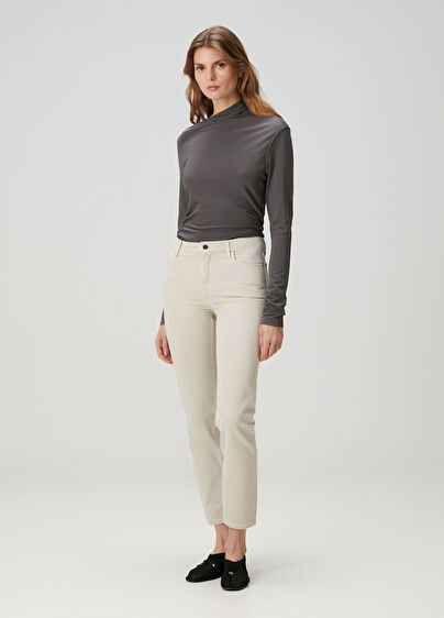 Yüksek (high-rise) bel, dar (slim) paça, organik pamuk jean pantolon