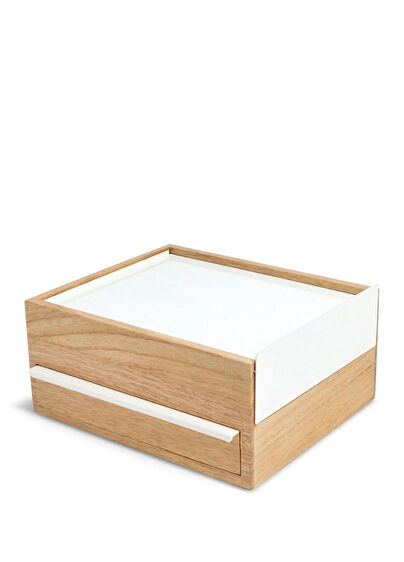 Stowit'i kullanarak tüm favori mücevher parçalarınızı tek bir yerde saklayın ve bunlara kolayca erişin. Her çekmecede mücevherlerinizin kaymasını veya hasar görmesini önlemek için keten bir ped bulunur. Stowit'in sade ve modern tasarımı, şifonyerinize, komodininize, masanıza veya koymayı seçtiğiniz her yere çekici bir ektir.