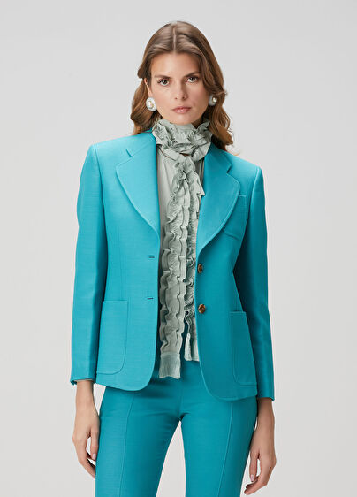 Kelebek yaka, düğme kapatmalı, yün ceket