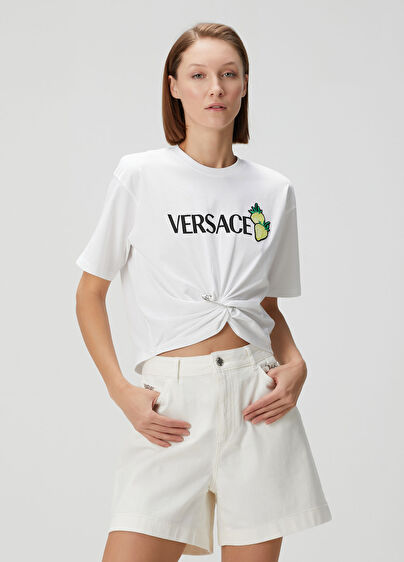 Bisiklet yaka, logo baskılı, cropped t-shirt