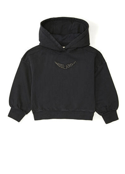 Siyah Kapüşonlu Kız Çocuk Sweatshirt
