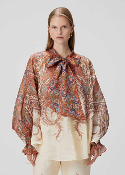 Yakası bağcıklı, şal desenli, balon kollu bluz Ürün bedeni: 1 / Model ölçüsü: Boy: 175 cm - Göğüs: 79 cm - Bel: 61 cm - Kalça: 88 cm Yeni sezon hazır giyim alışverişlerinizde ücretsiz tadilat yapılmaktadır%100 Rami2025 - Sonbahar / KışÜrün Kodu: 102280173_094