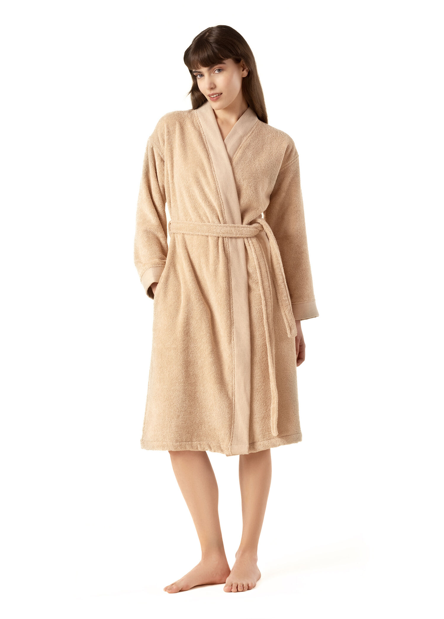 Doğal ve otantik bir görünüm sunan Solid bornozun tasarımı şık bir kemer ile tamamlanıyor